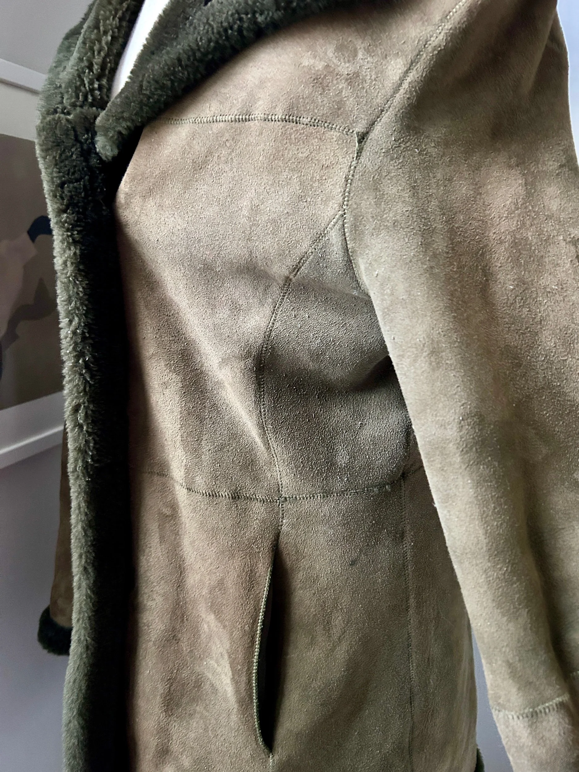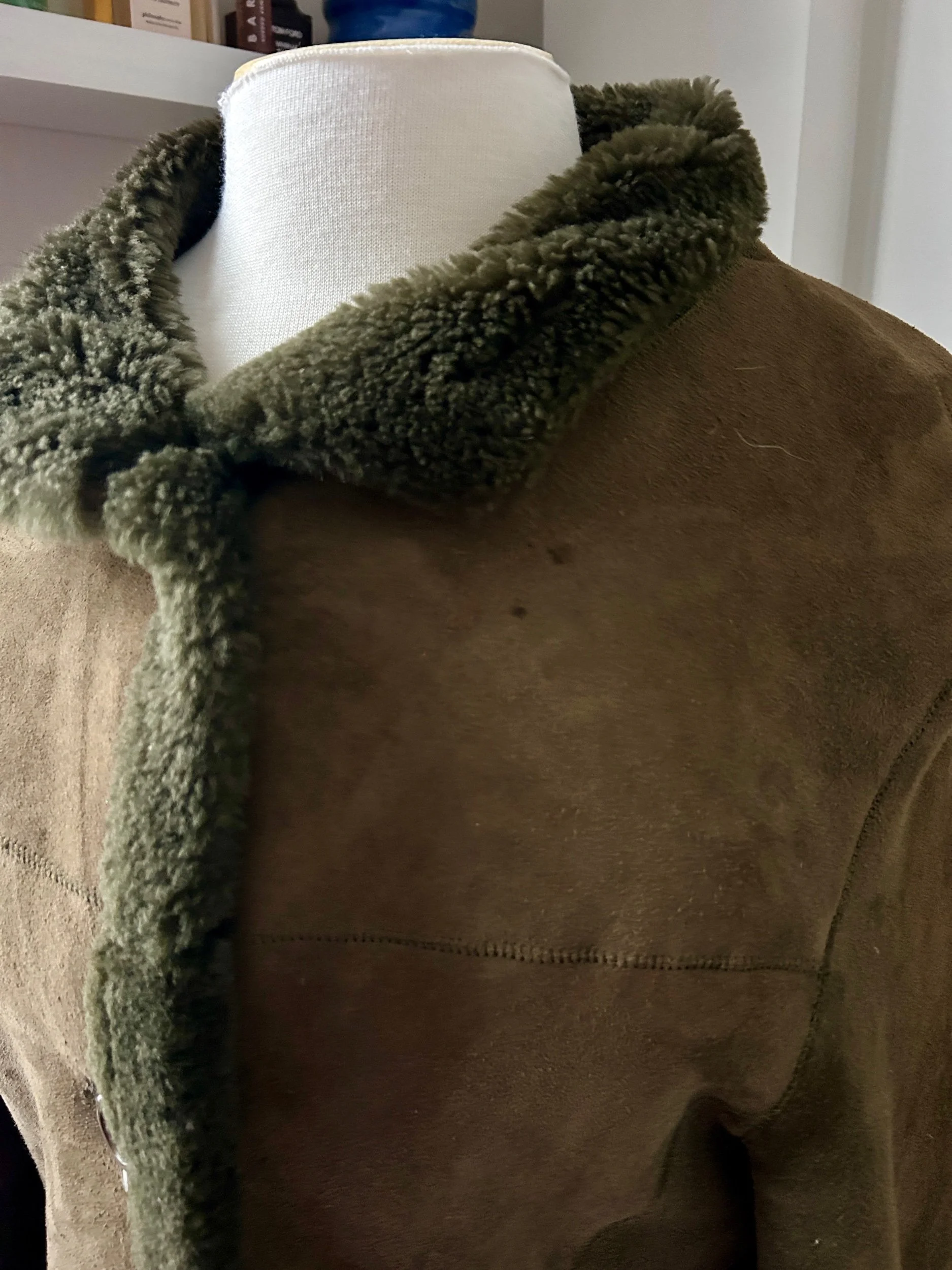 Faux fur lining; some pilling and wear particularly where the arms rub against the sides; size large